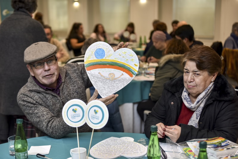La actividad los llevó a recorrer las distintas etapas del proceso de recuperación que han vivido y estuvo dirigida por la arteterapeuta, Claudia Yáñez, y la oncopsicóloga, Constanza Zúñiga, quienes guiaron la creación artística bajo el concepto “Resignifica el sentido de tu enfermedad”, con el objetivo de que los pacientes dieran cuenta de cómo una dificultad médica compleja puede ser una oportunidad para darle un nuevo sentido a la vida.
